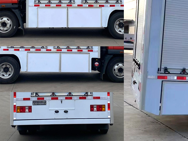 | 其它: | 廂體頂部封閉,不可開(kāi)啟。該車配備專用裝備架等專用設(shè)備, 主要用于裝載警用裝備及勘查、搶險(xiǎn)救援裝備的專用車輛。側(cè)防護(hù)由車身結(jié)構(gòu)代替,后防護(hù)材料為Q235,焊接,后防護(hù)截面尺寸(mm)100×50,下邊緣離地高450mm。隨底盤選裝駕駛室,選裝鋁合金輪輞。ABS型號(hào)/生產(chǎn)企業(yè):XH-KQ4S4M-E01/廣州市西合汽車電子裝備有限公司,CM4XL-4S/4M/廣州瑞立科密汽車電子股份有限公司,VIE ABS-Ⅱ/浙江萬(wàn)安科技股份有限公司。發(fā)動(dòng)機(jī)與油耗值對(duì)應(yīng)關(guān)系為(L/100km):WP2.3NQ130E61/10.18,D25TCIF1/11.06,WP2.5NQ160E61/10.11,WP2.5NQ150E61/10.11。選裝ETC。僅采用軸距3280mm。整備質(zhì)量包含冷卻液、潤(rùn)滑劑、反光背心、三角警告牌、備胎、停車楔、隨車工具、專用裝備。貨廂重量(kg):2160;材質(zhì)/厚度:底板,碳鋼/2mm;側(cè)板,內(nèi)板鋁板/1.2mm,外板碳鋼/2mm。 |