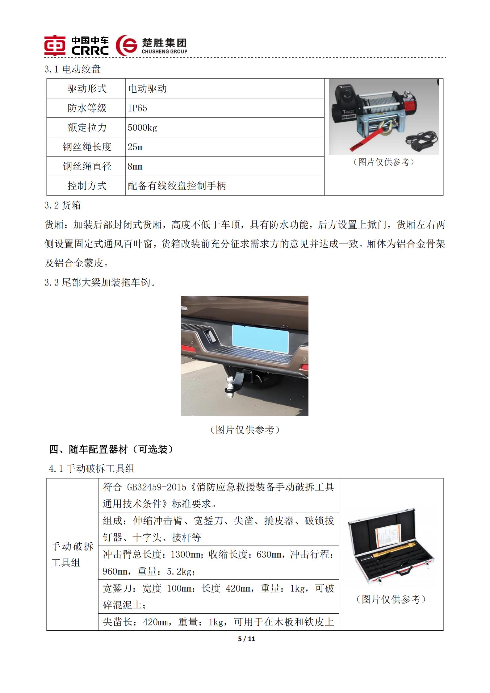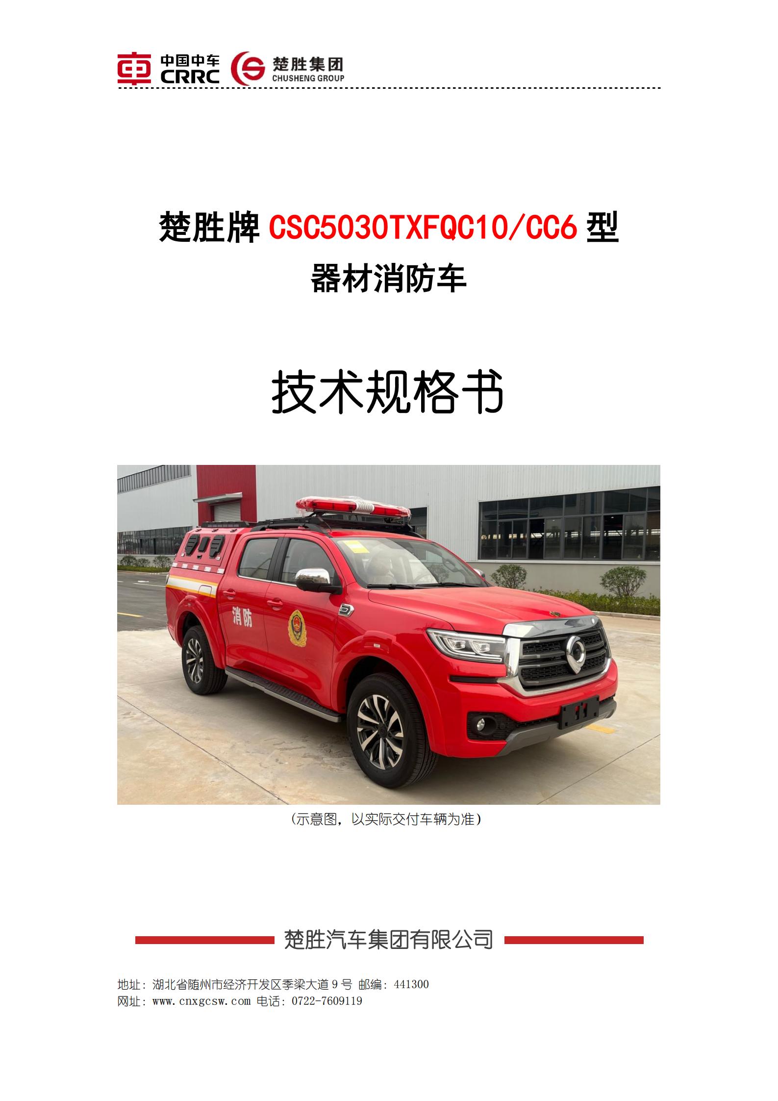 楚勝牌 CSC5030TXFQC10/CC6 型器材消防車