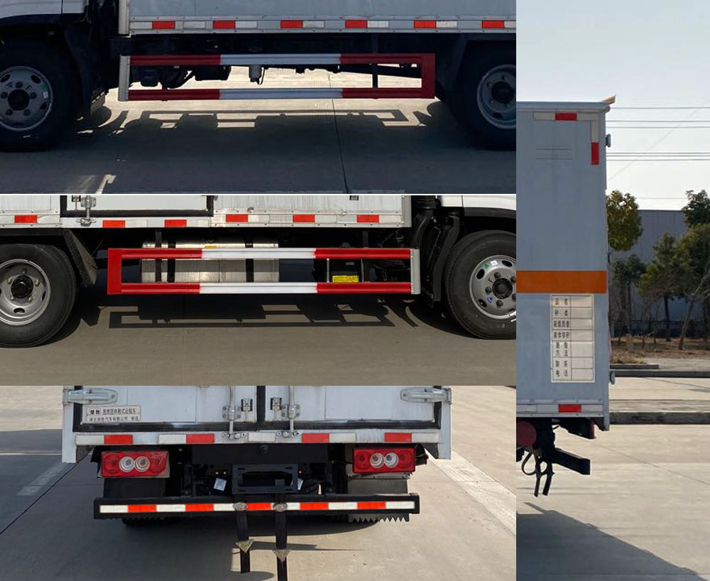 | 配置 | 該車為危險(xiǎn)品運(yùn)輸車,運(yùn)輸具有**容器(瓶)包裝的物品,運(yùn)送危險(xiǎn)物品類項(xiàng)號(hào):4.1,4.2,4.3。廂體頂部封閉,不可開(kāi)啟。側(cè)后防護(hù)材料均為Q235,螺栓連接,后防護(hù)截面尺寸(mm)100×50,下邊緣離地高450mm。選裝后部尾板,選裝后部尾板時(shí)后防護(hù)材料為Q235,螺栓連接,截面尺寸(mm)φ100,下邊緣離地高450mm。廂體選裝側(cè)開(kāi)門及位置或無(wú)側(cè)門、選裝后門雙拉桿,廂體選裝瓦楞板結(jié)構(gòu),選裝百葉窗。僅選用排氣管前置、限速裝置(限速80km/h)、前輪盤式制動(dòng)及子午線輪胎的底盤;轉(zhuǎn)向輪裝備輪胎爆胎應(yīng)急防護(hù)裝置。安裝帶有衛(wèi)星定位功能的行駛記錄儀。ABS型號(hào)/生產(chǎn)廠家:ABS-E/威伯科汽車**系統(tǒng)(**)有限公司,ABS-VI·E/廣州瑞立科密汽車電子股份有限公司,YF8/武漢元豐汽車電控系統(tǒng)有限公司。發(fā)動(dòng)機(jī)/油耗值(L/100Km)對(duì)應(yīng)關(guān)系為: F2.8NS6B131/11.47,Q28-130E60/11.02。尾板收起狀態(tài)水平長(zhǎng)度為280mm,尾板質(zhì)量為350kg。選裝ETC。 | ||