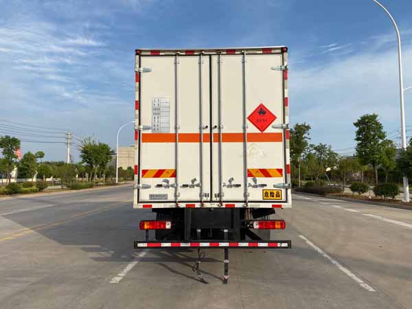 廂體配置:嚴(yán)格按照公告尺寸制作。外板采用優(yōu)質(zhì)冷軋鋼板帶百葉窗,內(nèi)飾為導(dǎo)電性能良好的鋁平板有透氣孔,矩形骨架結(jié)構(gòu)內(nèi)部填充防潮阻燃擠朔板,復(fù)合加鉚合工藝。廂體四周鋁合金包邊及包角,車廂底板鋪設(shè)防靜電膠皮,廂體前臉50公分高鋪設(shè)防靜電膠皮。后部設(shè)置對(duì)開門,可選裝側(cè)門位置,廂體內(nèi)部?jī)蓚?cè)安裝捆綁貨物的臥環(huán)。廂體內(nèi)部安裝氣體器及感應(yīng)防器及防盜報(bào)警器。車廂一周粘貼橙色放光帶,箱體粘貼 菱形告示牌,安全告示牌,危險(xiǎn)品牌,箱體安裝示廓燈(前白后紅),拖地靜電帶。