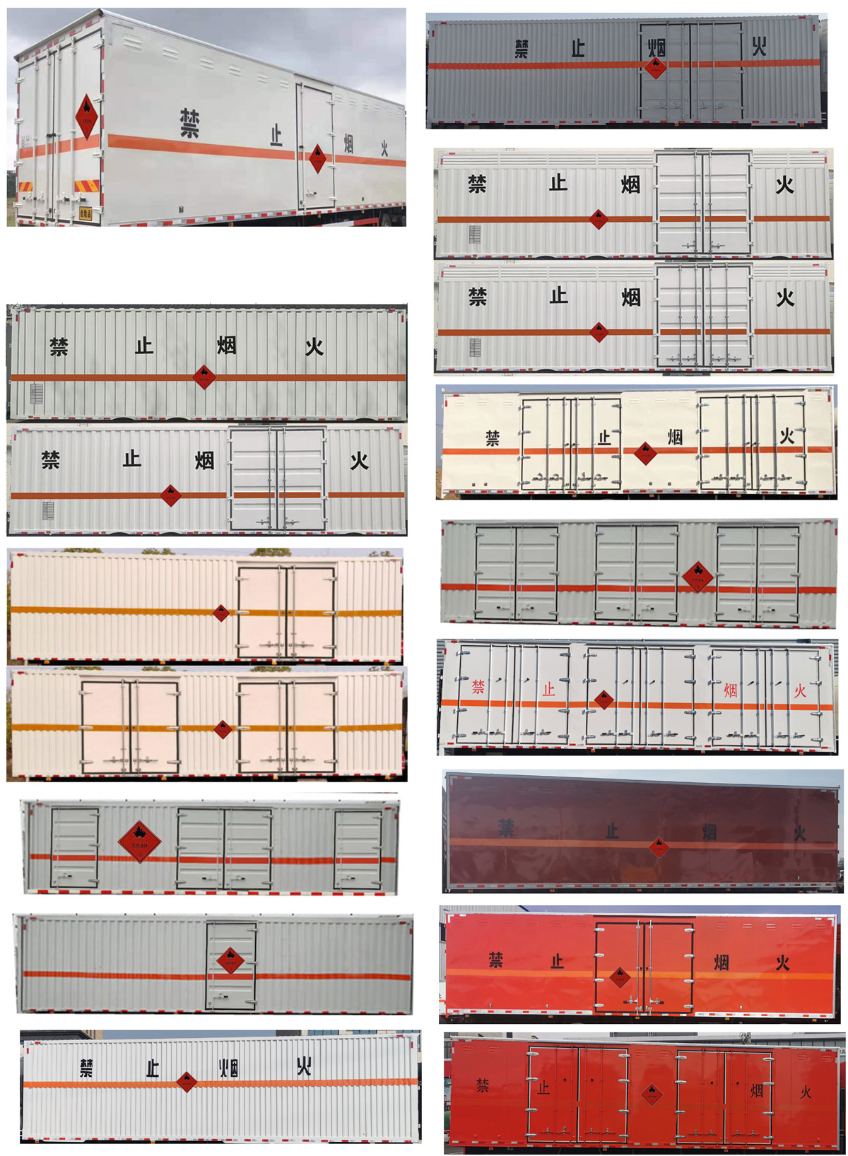| 配置 | 1、該車適用于危險品運輸,類項號:3。2、側(cè)、后防護材料均為Q235,側(cè)防護螺栓連接;后防護焊接,截面尺寸(寬×高)(mm)60×120,下邊緣離地高480mm。3、僅采用軸距(mm): 1800+4575+1400。EBS系統(tǒng)生產(chǎn)廠家及型號為:威伯科汽車**系統(tǒng)(**)有限公司(EBS3),廣州瑞立科密汽車電子股份有限公司(CM-EBS)。僅選用排氣管前置、限速裝置(限速79km/h)、前輪盤式制動及子午線輪胎的底盤;安裝帶有衛(wèi)星定位功能的行駛記錄儀;發(fā)動機型號及油耗值(L/100km)為:WP7.270E61/37.47,WP7.300E61/37.47,WP8.320E61/38.07,WP8.350E61/38.07。后軸采用空氣懸架。轉(zhuǎn)向輪安裝輪胎爆胎應急防護裝置。尾板收起狀態(tài)水平長度為290mm,尾板質(zhì)量為550kg。該車型可選裝ETC車載裝置.選裝后部無尾板;選裝側(cè)門型式及位置,選裝側(cè)門數(shù)量,選裝不開側(cè)門,廂體側(cè)面板選裝開百葉窗,選裝瓦楞板結(jié)構(gòu)。廂體頂部封閉不可開啟。運輸具有**容器(瓶)包裝的物品。 | ||
