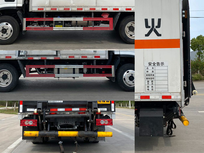 | 其它: | 1、該車為危險(xiǎn)品運(yùn)輸車,運(yùn)輸具有獨(dú)立容器(瓶)包裝的物品,運(yùn)送危險(xiǎn)物品類項(xiàng)號(hào):9。廂體頂部封閉,不可開啟。2、側(cè)、后防護(hù)材料均為Q235,螺栓連接,后防護(hù)截面尺寸(mm)Φ100,下邊緣離地高390mm。選裝后部無(wú)尾板時(shí),后防護(hù)材料為Q235,螺栓連接,截面尺寸(mm)120×60,下邊緣離地高400mm。尾板收起狀態(tài)水平長(zhǎng)度為280mm,尾板質(zhì)量為350kg。3、整備質(zhì)量含備胎,滅火器及隨車工具;貨廂重量為1050kg;材質(zhì)/厚度:復(fù)合板結(jié)構(gòu)廂體:底板材質(zhì)為Q235,厚度4mm,側(cè)板為外Q235+中間阻燃泡沫+內(nèi)純鋁板,厚度42mm;瓦楞板結(jié)構(gòu)廂體:底板材質(zhì)為Q235,厚度4mm,側(cè)板為Q235,厚度1.5mm。4、僅選用排氣管前置、限速裝置(限速80km/h)、前輪盤式制動(dòng)及子午線輪胎的底盤,轉(zhuǎn)向輪安裝輪胎爆胎應(yīng)急防護(hù)裝置。安裝帶有衛(wèi)星定位功能的行駛記錄儀。ABS系統(tǒng)控制器型號(hào)/生產(chǎn)企業(yè): :YF8/武漢元豐汽車電控系統(tǒng)有限公司,ABS-E/威伯科汽車控制系統(tǒng)(中國(guó))有限公司,ABS-VI·E/廣州瑞立科密汽車電子股份有限公司,YF9/武漢元豐汽車電控系統(tǒng)有限公司。發(fā)動(dòng)機(jī)/油耗值(L/100km)對(duì)應(yīng)關(guān)系為: D20TCIF2/11.22,D25TCIF1/11.16, D20TCIF1/11.22。僅選用3360mm軸距,選裝ETC。廂體側(cè)面選裝開門型式及位置,選裝不帶側(cè)開門,選裝瓦楞板結(jié)構(gòu);廂體前后及側(cè)面選裝開百葉窗,選裝后尾板樣式,選裝無(wú)后尾板。 |