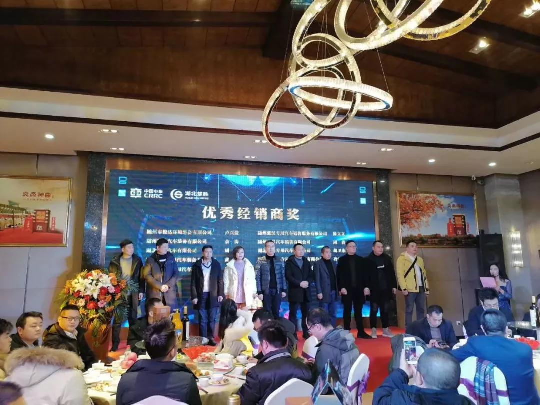 湖北楚勝公司總經(jīng)理**小康**先上臺致辭。**總表示,2019年是充滿挑戰(zhàn)和機遇的一年,在剛剛過去的一年里,湖北楚勝收獲了累累碩果,成績斐然,2020年,湖北楚勝將繼續(xù)砥礪前行,整合所有資源,抓住發(fā)展機遇,共創(chuàng)更美好的未來。本次盛會設(shè)立了合作貢獻(xiàn)獎一名、**經(jīng)銷商獎十名,銳意進(jìn)取獎五名,中車**董事長顧一峰、湖北楚勝公司董事長張?zhí)胤?、楚勝公?/span>總經(jīng)理**小康分別為獲獎?wù)咭灰活C獎。