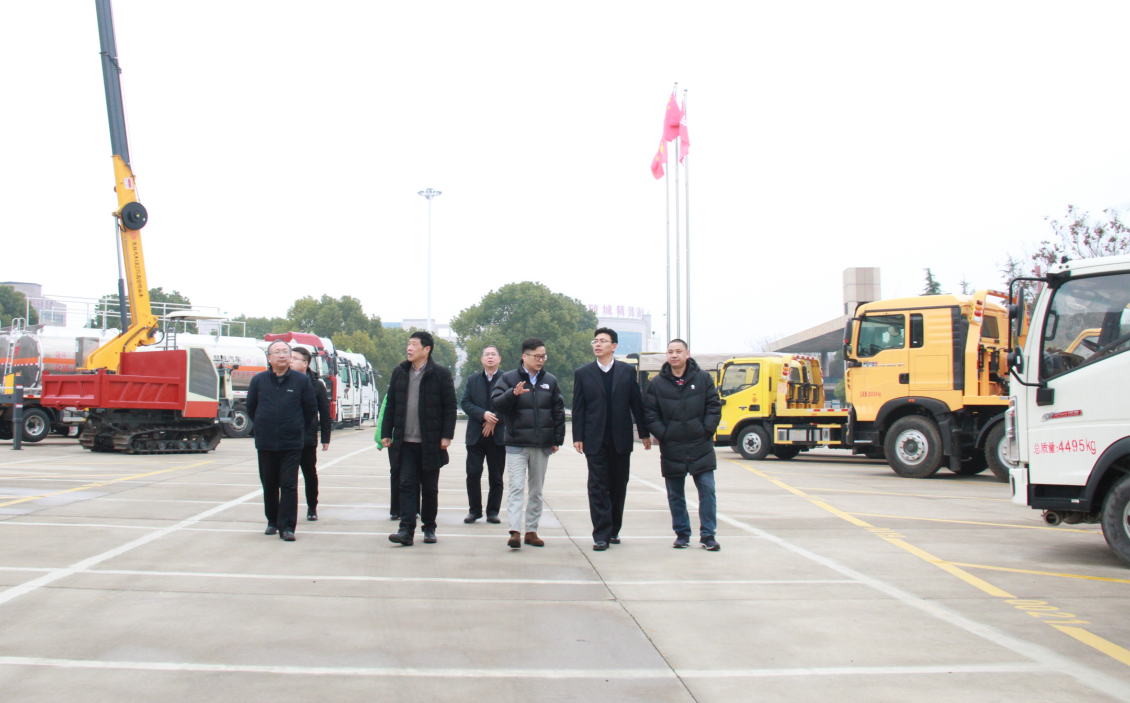 張樹中總一行在董鳴勇總及領導班子的陪同下參觀了公司核心車輛展示區(qū),罐式車生產線、自卸車自動化焊接生產線、備料中心自動化生產線以及應急裝備車輛生產線,并在會議室進行了交流座談。