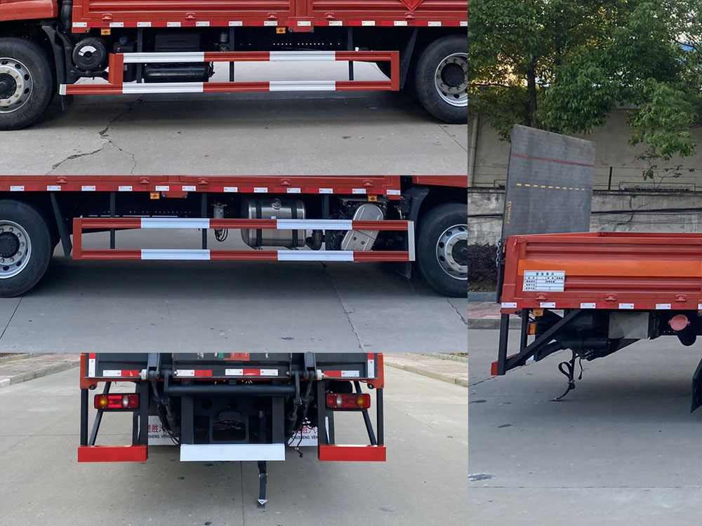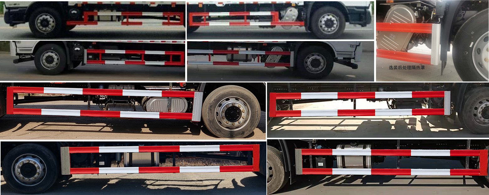 | 其它: | 該車適用于運(yùn)輸危險(xiǎn)品,運(yùn)輸具有獨(dú)立容器(瓶)包裝的物品.運(yùn)送危險(xiǎn)物品類項(xiàng)號:2.1,2.2.側(cè),后防護(hù)材料均為Q235,側(cè)防護(hù)焊接連接,后防護(hù)焊接.截面尺寸120×50mm,下邊緣離地高440mm.選裝后部無液壓尾板時(shí),后防護(hù)材料為Q235,后防護(hù)焊接.截面尺寸120×60mm,下邊緣離地高440mm.僅選用排氣管前置、限速裝置(限速80km/h)、前輪盤式制動及子午線輪胎的底盤,后軸裝備空氣懸架,轉(zhuǎn)向輪安裝輪胎爆胎應(yīng)急防護(hù)裝置,安裝帶有衛(wèi)星定位功能的行駛記錄儀.EBS型號/生產(chǎn)廠家:EBS5/東科克諾爾商用車制動系統(tǒng)(十堰)有限公司.采用的發(fā)動機(jī)與油耗值(L/100Km)對應(yīng)關(guān)系為:B6.2NS6B210/26.5,DDi50E190-60/23.9.液壓升降尾板收起狀態(tài)水平長度為290mm,尾板質(zhì)量為550kg.該車型可選裝直接供電式ETC車載裝置.廂體選裝無柵欄,選裝柵欄樣式,選裝貨箱箱板結(jié)構(gòu).隨底盤選裝燃油箱,電瓶,尿素罐,儲氣筒,后處理左右安裝位置,選裝后處理隔熱罩.僅采用底盤4700mm,5000mm軸距改裝. | ||
